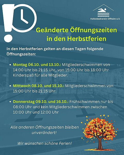 In den Herbstferien gelten an diesen Tagen folgende Öffnungszeiten: