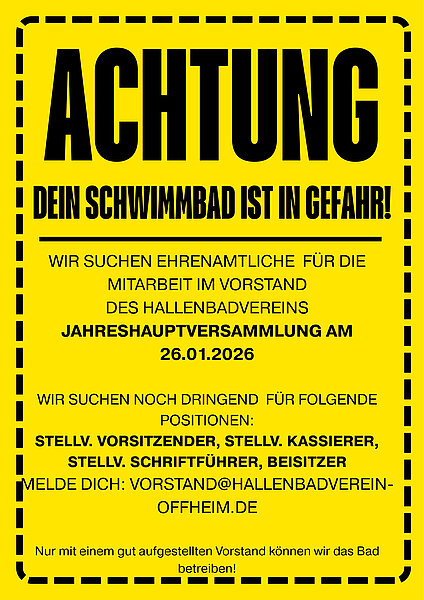 Mitglied im Hallenbadverein Offheim e.V. kann jeder werden, egal ob jung oder alt! Statt einem privaten Investor oder einer Kommune gehört das Bad unseren Mitgliedern. Geführt wird es durch einen ehrenamtlich tätigen Vorstand. Dadurch haben wir keine Gewinnabsichten, sondern nur die Erhaltung des Schwimmbades als Ziel!